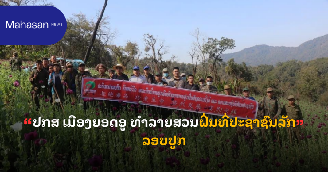 ແຫລ່ງຂ່າວຈາກ ແຂວງຜົ້ງສາລີ ໃຫ້ຮູ້ວ່າ: ພະແນກກວດກາ ແລະ ຄວບຄຸມຢາເສບຕິດ ກອງບັນຊາການປ້ອງກັນຄວາມສະຫງົບ ແຂວງຜົ້ງສາລີ ສົມທົບກັບກຳລັງປ້ອງກັນຊາດ-ປ້ອງກັນຄວາມສະຫງົບ ເມືອງຍອດອູ ແລະ ພາກສ່ວນທີ່ກ່ຽວຂ້ອງ ລົງທຳລາຍສວນຢາຝິ່ນທີ່ປະຊາຊົນລັກລອບປູກ ຢູ່ບ້ານພານ ເຂດພູຕາສານ (ຫົວນໍ້າຕອງ) ເມືອງຍອດອູ ແຂວງຜົ້ງສາລີ ເມື່ອບໍ່ດົນມານີ້ ໂດຍການນຳພາຂອງທ່ານ ພັທ ລີ ປັນແກ້ວ ຫົວໜ້າກອງບັນຊາການປ້ອງກັນຄວາມສະຫງົບ, ທ່ານ ສົມຫວັງ ສຸມວິໄລ ເລຂາຄະນະບໍລິຫານງານພັກ ເມືອງຍອດອູ ພ້ອມດ້ວຍພະນັກງານນັກຮົບສອງກຳລັງປ້ອງກັນຊາດ-ປ້ອງກັນຄວາມສະຫງົບ ເມືອງ ຕະຫລອດຮອດອົງການປົກຄອງເມືອງ ແລະ ອຳນາດການປົກຄອງບ້ານເຂົ້າຮ່ວມ.