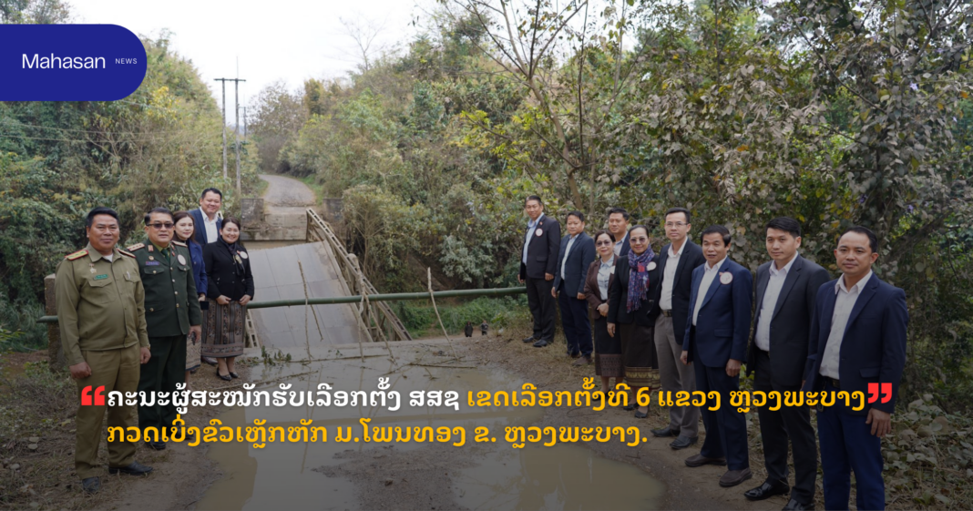 ໃນວັນທີ 10 ກຸມພາ 2026 ນີ້ , ຄະນະຜູ້ສະໝັກຮັບເລືອກຕັ້ງ ສສຊ ຊຸດທີ X ເຂດເລືອກຕັ້ງທີ 6 ແຂວງຫຼວງພະບາງ ຈໍານວນ 7 ທ່ານ ຍິງ 3 ທ່ານ, ພາຍຫຼັງສໍາເລັດລົງພົບປະສະເໜີຕົວ ກັບຜູ້ມີສິດປ່ອນບັດເລືອກຕັ້ງຢູ່ ໜ່ວຍປ່ອນບັດ ບ້ານ ກາງ ເມືອງໂພນທອງ ສໍາເລັດແລ້ວ ,ຄະນະຜູ້ສະໜັກໄດ້ເຄື່ອນໄຫວລົງເບິ່ງຜົນກະທົບ ຂົ້ວເຫຼັກ ຫັກ ລະຫວ່າງ ບ້ານ ກາງ ຫາ ບ້ານ ວັງແນກ ເມືອງໂພນທອງ ທີ່ໄດ້ເກີດເຫດ ລົດບັນທຸກໜັກ ເຂົ້າຂົວເຮັດໃຫ້ຂົວຫັກເປເພ ໃນຄັ້ງວັນທີ 7 ກຸມພາ 2026 ຜ່ານມານີ້.