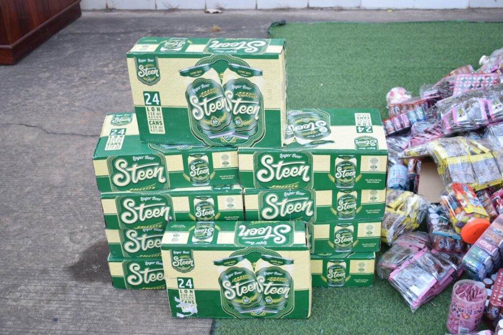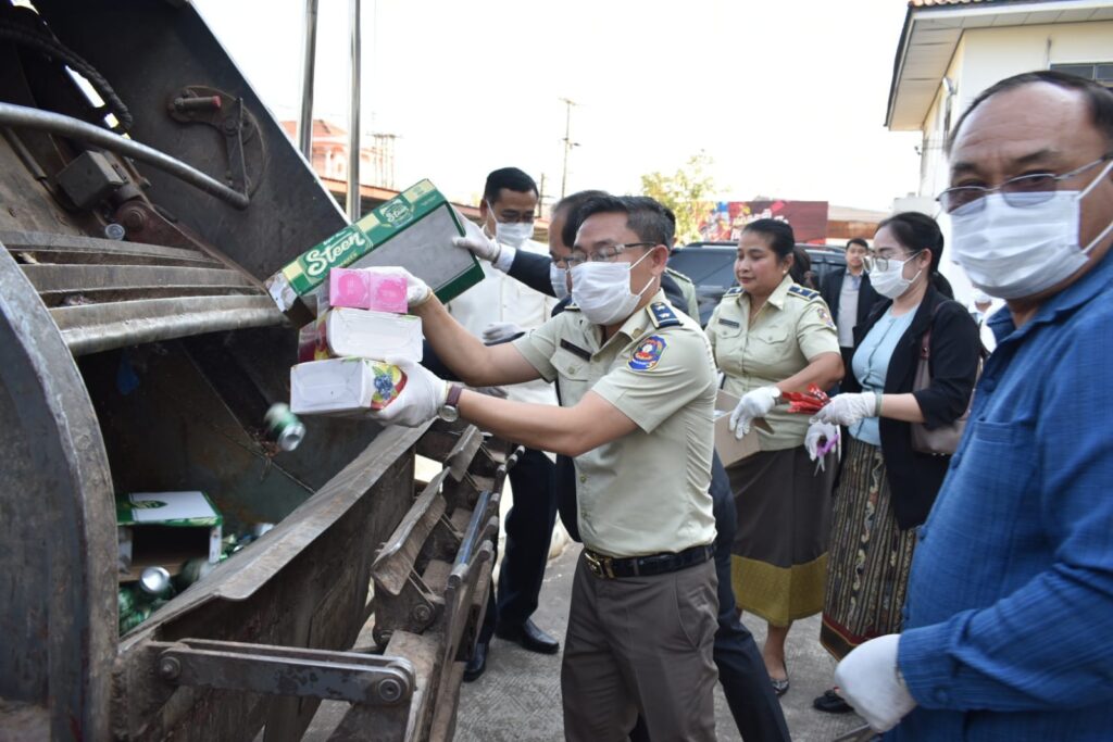 ຈາກນັ້ນໄດ້ນຳເອົາສິນຄ້າເສື່ອມຄຸນມາທຳລາຍປະກອບມີ: ນ້ຳຫວານອັດລົມ, ຄິມຊອງແຕງໂມ, ເບຍສະຕິງ, ໂລຊັ້ນຜິວໃສ, ເຊລ້ຳທາໜ້າ, ສະບູຂັດຜິວ, ເຂົ້າໜົມອົມ, ຄິມກັນແດດ, ເຂົ້າໜົມຊ໋ອກໂກແລັດເບີເກີ້,ໃນຕາເວັ້ນ, ສະບູລ້າງໜ້າ,ກາເຟລວມ, ຄິມທາໜ້າລວມ ແລະ ອື່ນໆ ຕື່ມອີກ.