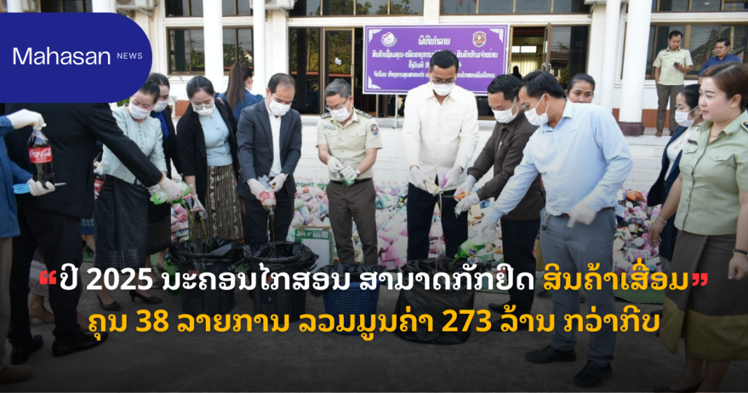 ຈາກນັ້ນໄດ້ນຳເອົາສິນຄ້າເສື່ອມຄຸນມາທຳລາຍປະກອບມີ: ນ້ຳຫວານອັດລົມ, ຄິມຊອງແຕງໂມ, ເບຍສະຕິງ, ໂລຊັ້ນຜິວໃສ, ເຊລ້ຳທາໜ້າ, ສະບູຂັດຜິວ, ເຂົ້າໜົມອົມ, ຄິມກັນແດດ, ເຂົ້າໜົມຊ໋ອກໂກແລັດເບີເກີ້,ໃນຕາເວັ້ນ, ສະບູລ້າງໜ້າ,ກາເຟລວມ, ຄິມທາໜ້າລວມ ແລະ ອື່ນໆ ຕື່ມອີກ.