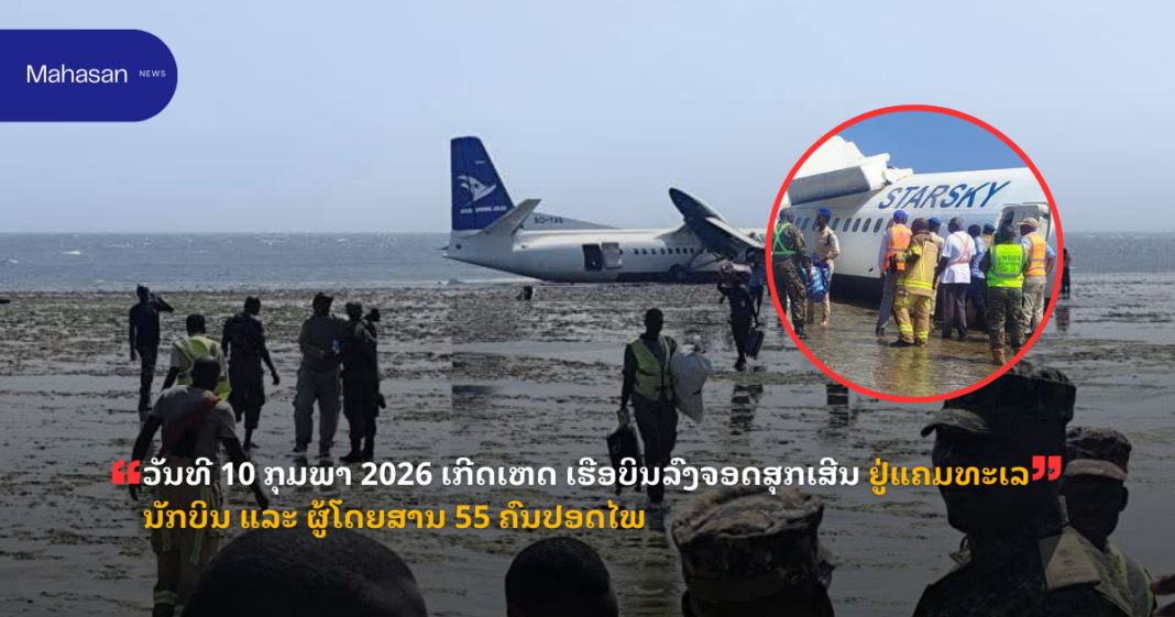 ສຳນັກຂ່າວຕ່າງປະເທດລາຍງານວ່າ: ວັນທີ 10 ກຸມພາ 2026 ເກີດເຫດເຮືອບິນໂດຍສານຂະໜາດກາງຂອງສາຍການບິນ “ສະຕາສະກາຍ ເອເວຍຊັນ” (Star Sky Aviation) ແຫ່ງປະເທດໂຊມາລີ ປະສົບບັນຫາຂັດຂ້ອງທາງດ້ານເຕັກນິກ ເຮັດໃຫ້ນັກບິນຕັດສິນໃຈນຳເຮືອບິນລົງຈອດສຸກເສີນ ຢູ່ບໍລິເວນຊາຍຝັ່ງ ໃກ້ກັບສະໜາມບິນສາກົນ ໃນນະຄອນຫລວງໂມກາດີຊູ, ເຊິ່ງຜູ້ໂດຍສານ ແລະ ລູກເຮືອທັງໝົດ 55 ຄົນ ຢູ່ເທິງເຮືອບິນປອດໄພທັງໝົດ.