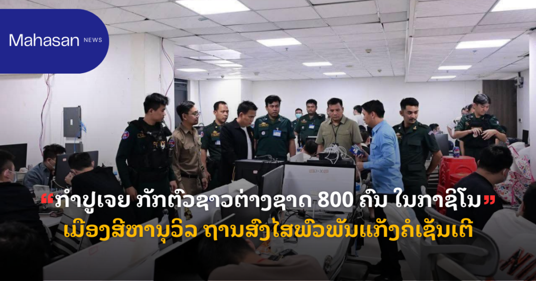 ສຳນັກຂ່າວ TBS ຂອງຍີ່ປຸ່ນ ລາຍງານວ່າ: ວັນທີ 10 ກຸມພາ 2026 ເຈົ້າໜ້າທີ່ກຳປູເຈຍ ໄດ້ຍົກລະດັບການປາບປາມເຄືອຂ່າຍຫຼອກລວງຂ້າມຊາດຢ່າງເຂັ້ມງວດ, ລ່າສຸດໄດ້ເຂົ້າກວດຄົ້ນສະຖານບັນເທີງກາຊິໂນ ໃນເມືອງສີຫານຸວິລ, ທາງຕອນໃຕ້ຂອງປະເທດ ແລະ ໄດ້ກັກຕົວຊາວຕ່າງຊາດ ປະມານ 800 ຄົນ. ໂດຍກຳລັງຕຳຫຼວດທ້ອງຖິ່ນໄດ້ສົມທົບກັນບຸກເຂົ້າກວດຄົ້ນສະຖານທີ່ເປົ້າໝາຍ ແລະ ພົບຜູ້ຕ້ອງສົງໄສຈາກຢ່າງໜ້ອຍ 7 ປະເທດ ເປັນຕົ້ນແມ່ນ: ຍີ່ປຸ່ນ, ສະຫະລັດ ອາເມລິກາ ແລະ ສປ ຈີນ.