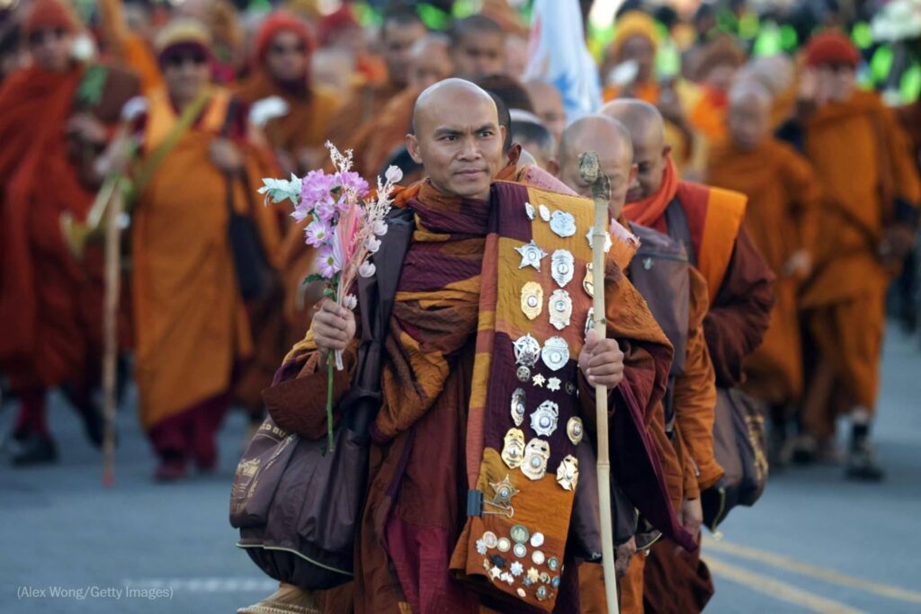 ຄະນະສົງດັ່ງກ່າວປະກອບມີພະພິກຂຸ 19 ອົງ, ນຳໂດຍ “ພະປັນນາກຣາພິກຂຸ” (Bhikkhu Pannakara) ພະສົງຊາວອາເມລິກາເຊື້ອສາຍຫວຽດນາມ. ການເດີນທາງໄດ້ເລີ່ມຕົ້ນຈາກວັດແຫ່ງໜຶ່ງໃນເມືອງ ຟອດເວີດ (Fort Worth), ລັດເທັກຊັດ ຕັ້ງແຕ່ທ້າຍເດືອນຕຸລາປີຜ່ານມາ ແລະ ມຸ່ງ ໜ້າສູ່ຈຸດໝາຍປາຍທາງທີ່ນະຄອນຫຼວງວໍຊິງຕັນ ດີຊີ ທ່າມກາງການຕ້ອນຮັບຢ່າງອົບອຸ່ນຈາກປະຊາ ຊົນໃນທຸກຈຸດທີ່ຜ່ານ.