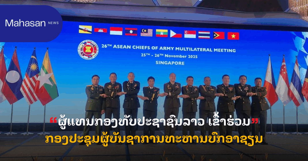ໃນວັນທີ 26 ພະຈິກ 2025, ຄະນະຜູ້ແທນກອງທັບປະຊາຊົນລາວ ນໍາໂດຍ ທ່ານ ພົນຕີ ກົງທອງ ສຸຂະວົງ ຮອງຫົວໜ້າກົມໃຫຍ່ເສນາທິການກອງທັບປະຊາຊົນລາວ, ໄດ້ເຂົ້າຮ່ວມກອງປະ ຊຸມຜູ້ບັນຊາການທະຫານບົກອາຊຽນ (ACAMM) ຄັ້ງທີ 26 ທີ່ປະເທດ ສິງກະໂປ ໂດຍການເປັນປະທານຂອງ ທ່ານ ພົນຕີ ໄກ ເດສ່ຽນ ຜູ້ບັນຊາການທະຫານບົກແຫ່ງກອງທັບສິງກະໂປ ແລະ ມີຜູ້ບັນ ຊາການທະຫານບົກຈາກກອງທັບ ບັນດາປະເທດສະມາຊິກອາຊຽນ ເຂົ້າຮ່ວມ.