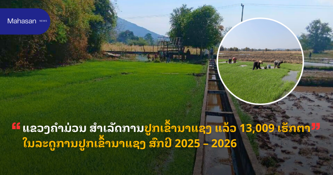ແຂວງຄໍາມ່ວນ ສໍາເລັດການປູກເຂົ້ານາແຊງ ແລ້ວ 13,009 ເຮັກຕາໃນລະດູການປູກເຂົ້ານາແຊງ ສົກປີ 2025 – 2026