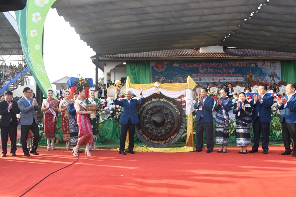 ວັນທີ 14 ກຸມພາ 2026 ນີ້ ງານມະຫະກໍາບຸນຊ້າງຄັ້ງທີ 19 ປະຈໍາປີ 2026 ໄດ້ຈັດຂຶ້ນຢ່າງຄຶກຄື້ນ ແລະ ເປັນທາງການ ໂດຍໃຫ້ກຽດເຂົ້າຮ່ວມ ຂອງທ່ານ ຄໍາພັນ ເຜີຍຍະວົງ ກຳມະການກົມການເມືອງສູນກາງພັກ, ຫົວໜ້າຄະນະໂຄສະນາອົບຮົມສູນກາງພັກ, ປະທານສະພາທິດສະດີສູນກາງພັກ, ທ່ານ ເພັງນິລັນ ຄໍາພັນເພັງ ກຳມະການສູນກາງພັກ, ເລຂາຄະນະບໍລິຫານງານພັກແຂວງ, ປະທານສະພາປະຊາຊົນແຂວງ ພ້ອມດ້ວຍພັນລະຍາ, ທ່ານ ດວງຕາ ໄຊວຸດ ຮອງເລຂາຄະນະບໍລິຫານງານພັກແຂວງ, ປະທານຄະນະກໍາມະການປົກຄອງແຂວງ ພ້ອມດ້ວຍພັນລະຍາ, ມີບັນດາທ່ານອາດິດການນໍາຂັ້ນສູນກາງ, ຂອງແຂວງ, ການນໍາພັກລັດຂັ້ນແຂວງ, ເມືອງ ແຂກພາຍໃນ ແລະ ຕ່າງປະເທດ ພ້ອມດ້ວຍມວນຊົນຊາວແຂວງໄຊຍະບູລີ ເຂົ້າຮ່ວມຢ່າງຫຼວງຫຼາຍ.
