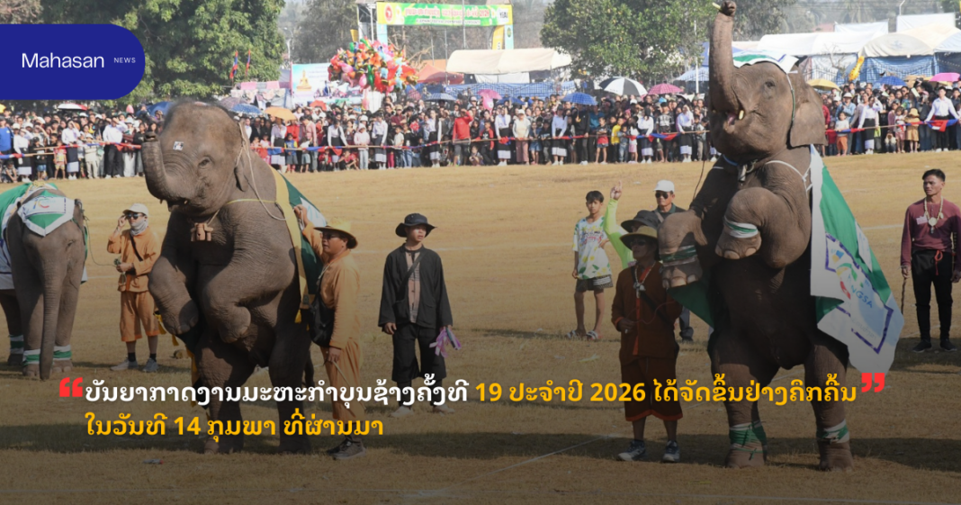 ບັນຍາກາດງານມະຫະກໍາບຸນຊ້າງຄັ້ງທີ 19 ປະຈໍາປີ 2026 ໄດ້ຈັດຂຶ້ນຢ່າງຄຶກຄື້ນໃນວັນທີ 14 ກຸມພາ ທີ່ຜ່ານມາ