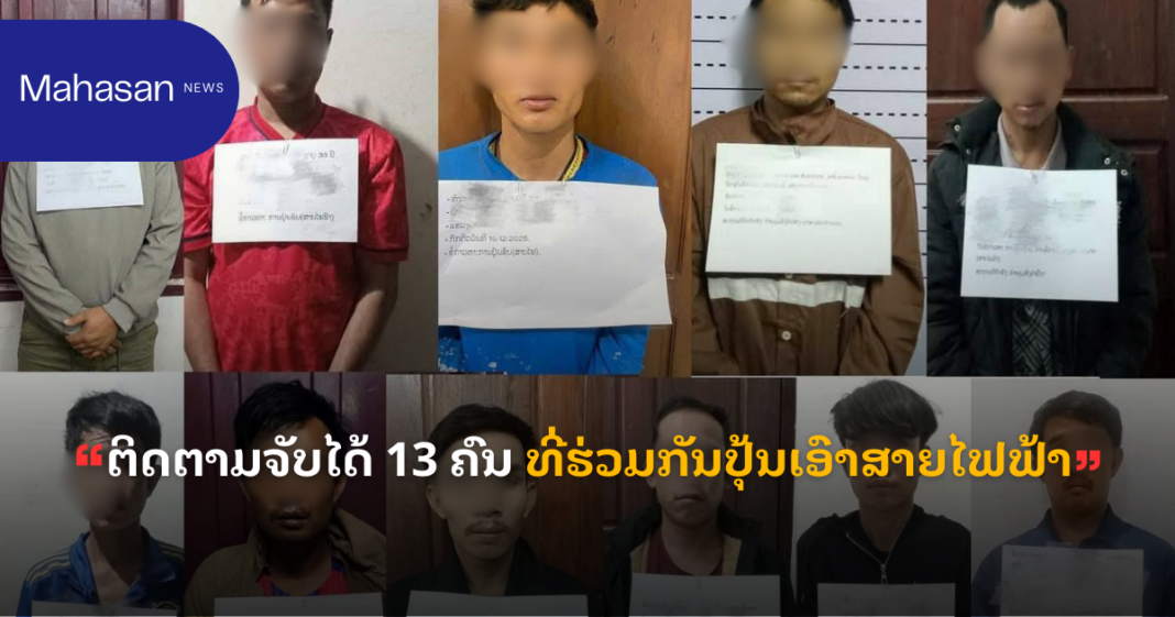 ເຈົ້າໜ້າທີ່ວິຊາສະເພາະ ຈຶ່ງໄດ້ລົງເກັບກຳຂໍ້ມູນຫຼັກ ຖານ ຕ່າງໆຢູ່ໃນສະຖານທີ່ເກີດເຫດ ພ້ອມທັງກວດກາ ເບິ່ງກ້ອງວົງຈອນປິດຢູ່ຕາມສາຍທາງ ແລະ ຕາມເຮືອນຂອງປະຊາຊົນທີ່ຢູ່ຕາມແຄມທາງແລ້ວຂຶ້ນບັນຊີເປົ້າໝາຍ ມາ ຮອດວັນທີ 13/12/2025 ຈິ່ງສາ ມາດກັກຕົວ ເປົ້າ ໝາຍສົງໃສໄດ້ 1 ຄົນ ຊື່ ທ້າວ ຄໍາດີ ອາຍຸ 33 ປີ ຢູ່ບ້ານ ປາກຊ່ອງ ເມືອງມະຫາໄຊ ແຂວງຄຳມ່ວນສອບສວນ ຜູ້ກ່ຽວຈຶ່ງໄດ້ຮັບສາລະພາບຕໍ່ເຈົ້າໜ້າທີ່ວ່າ: ໄດ້ລົງມີປຸ້ນເອົາສາຍໄຟຟ້າ ພ້ອມກັບກຸ່ມແກ້ງພັກພວກ ຢູ່ ໂຮງງານຄໍາມ່ວນອຸດສາຫະກຳແທ້. ຜ່ານການສອບສວນຂະຫຍາຍຜົນ ຂອງເຈົ້າໜ້າທີ່ຕຳຫຼວດວິຊາສະເພາະ ມາຮອດວັນທີ 14 ທັນວາ 2025 ສາມາດກັກຕົວພວກຮ່ວມຂະບວນການໄດ້ອີກ ຄື ທ້າວ ຄໍາໃບ ອາຍຸ 27 ປີ,ທ້າວ ນາລີ ,ອາຍຸ 29 ປີ, ທ້າວ ເລີງ ໜູພອນ,ອາຍຸ 28 ປີ, ທັງສາມຄົນ ຢູ່ບ້ານຕະຫຼາກ ເມືອງຍົມມະລາດ ແຂວງຄຳມ່ວນ, ທ້າວ ພິມມະສອນ ,ອາຍຸ 33 ປີ,ຢູ່ບ້ານຄຳບຸ່ນ, ທ້າວ ຈ່ອຍ , ອາຍຸ 23 ປີ,ຢູ່ບ້ານນາໄກ່ເຂ່ຍ, ທ້າວ ບຸນເພັງ,ອາຍຸ 29 ປີ ຢູ່ບ້ານຈອມເພັດ, ທ້າວ ສີວາ, ອາຍຸ 33 ປີຢູ່ບ້ານໂພນສະໜາມ ,ທ້າວ ຂວັນໃຈ ອາຍຸ 31 ປີ ຢູ່ບ້ານ ສັນຕິສຸກ ເມືອງທ່າແຂກ ແຂວງຄຳມ່ວນ,