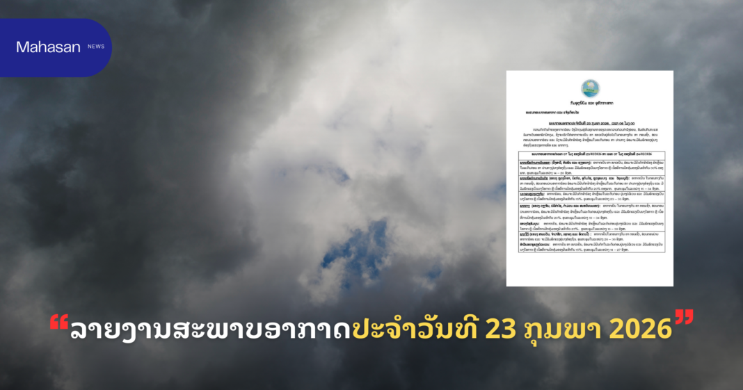 ພະຍາກອນອາກາດ ແຕ່ເວລາ 07 ໂມງ ຂອງວັນທີ 23/02/2026 ຫາ ເວລາ 07 ໂມງ ຂອງວັນທີ 24/02/2026