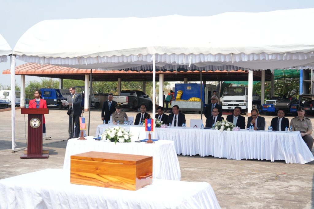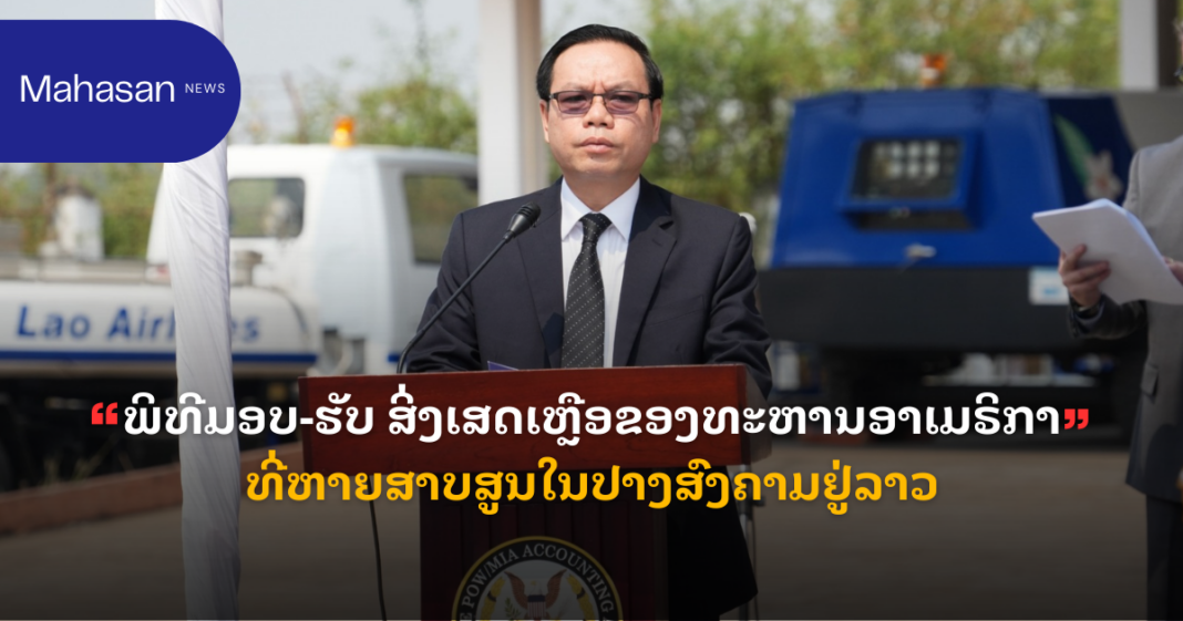 ພິທີມອບ-ຮັບ ສິ່ງເສດເຫຼືອຂອງທະຫານອາເມຣິກາທີ່ຫາຍສາບສູນໃນປາງສົງຄາມຢູ່ລາວ