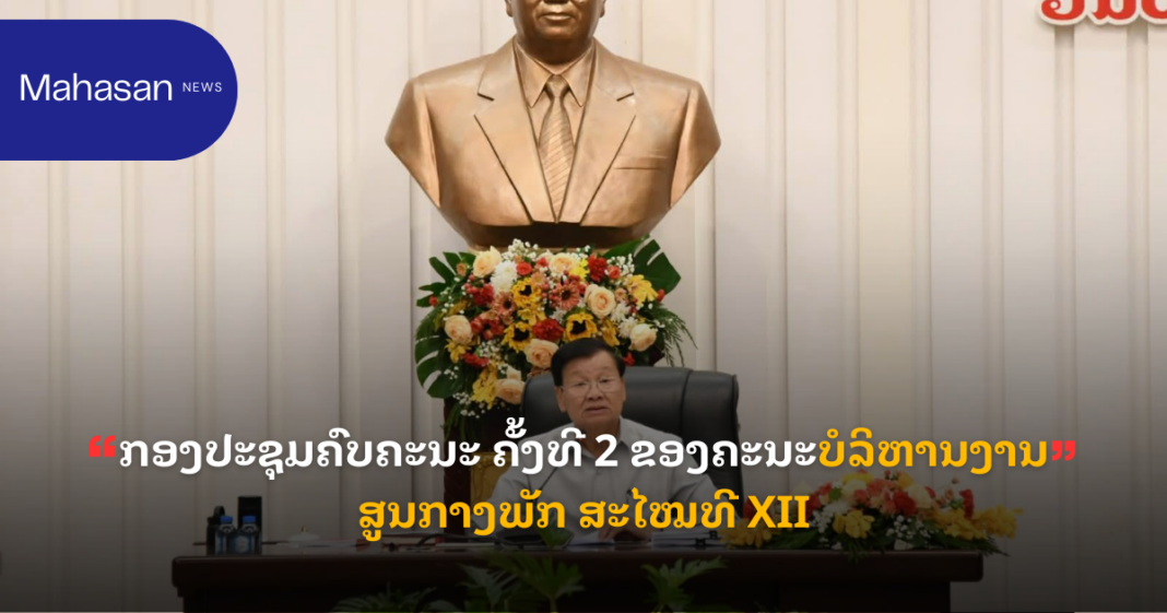 ໃນຕອນເຊົ້າ ຂອງວັນທີ 3 ມີນາ 2026, ກອງປະຊຸມຄົບຄະນະ ຄັ້ງທີ 2 ຂອງຄະນະບໍລິຫານງານສູນກາງພັກ ສະໄໝທີ XII ໄດ້ໄຂຂຶ້ນຢ່າງເປັນທາງການທີ່ ສໍານັກງານສູນກາງພັກ ພາຍໃຕ້ການເປັນປະທານຂອງ ສະຫາຍ ທອງລຸນ ສີສຸລິດ, ເລຂາທິການໃຫຍ່ ຄະນະບໍລິຫານງານສູນກາງພັກ ປະຊາຊົນປະຕິວັດລາວ, ປະທານປະເທດ ໂດຍການເຂົ້າຮ່ວມຂອງບັນດາສະຫາຍກົມການເມືອງສູນກາງພັກ, ຄະນະເລຂາທິການສູນກາງພັກ, ກໍາມະການສູນກາງພັກ ສົມບູນ ແລະ ສໍາຮອງ. ກອງປະຊຸມ ຈະດໍາເນີນເປັນເວລາ3ວັນ