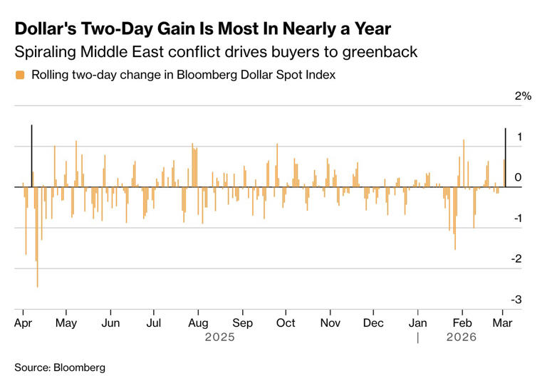 ກ່ອນທີ່ສະຫະລັດ ແລະ ອິດສະຣາແອນ ຈະເລີ່ມໂຈມຕີອີຣ່ານໃນຊ່ວງທ້າຍສັບປະດາຜ່ານມາ, ຕະຫຼາດສ່ວນໃຫຍ່ຕ່າງຄາດກັນວ່າຄ່າເງິນໂດລາຈະອ່ອນຕົວລົງ. ໂດຍຂໍ້ມູນຈາກ Bloomberg ທີ່ຮວບຮວມຈາກ CFTC ຈົນເຖິງວັນທີ 24 ກຸມພາ ພົບວ່ານັກລົງທຶນໄດ້ຖືຄອງສະຖານະເດີມພັນວ່າ “ເງິນໂດລາຈະອ່ອນຄ່າລົງ” ຄິດເປັນມູນຄ່າສູງເຖິງເກືອບ 1.9 ລ້ານລ້ານໂດລາ.