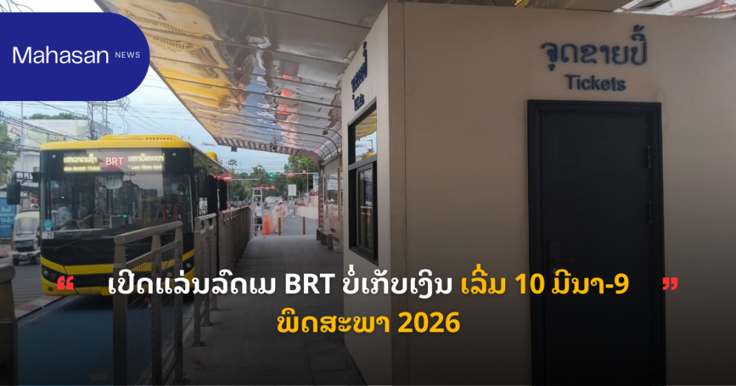 ເປີດແລ່ນລົດເມ BRT ບໍ່ເກັບເງິນ ເລີ່ມ 10 ມີນາ-9 ພຶດສະພາ 2026