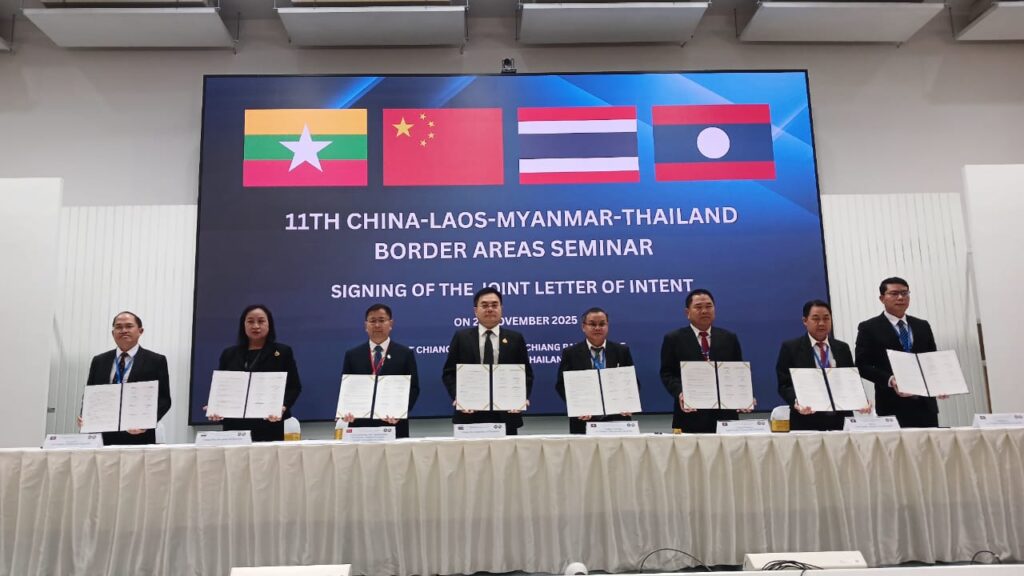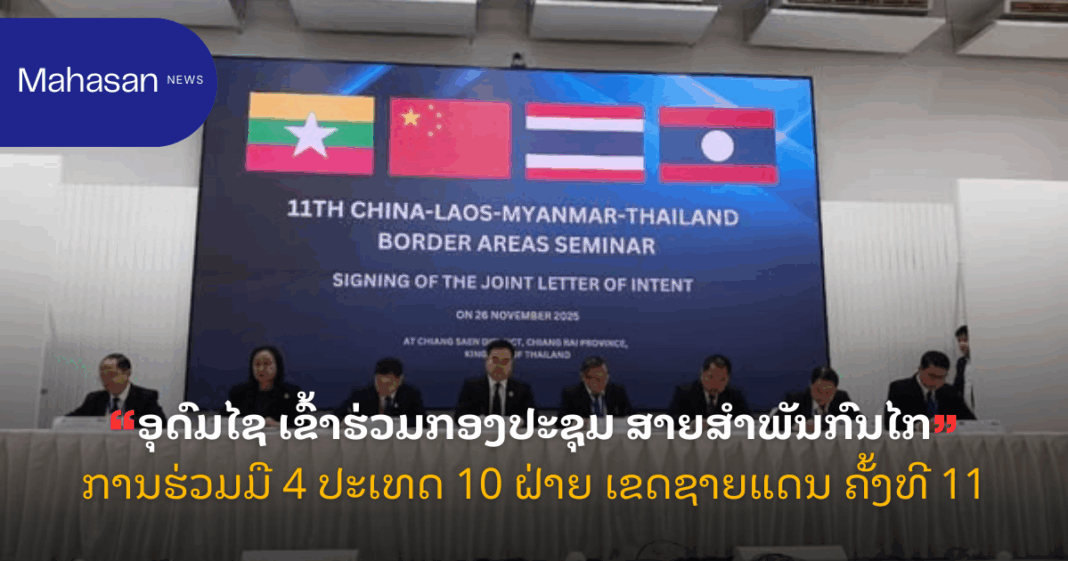 ແຫລ່ງຂ່າວຈາກ ແຂວງອຸດົມໄຊ ໃຫ້ຮູ້ວ່າ: ໃນລະຫວ່າງວັນທີ 25-27 ພະຈິກ 2025, ຄະນະຜູ້ແທນ ຈາກ ສປປ ລາວ ລວມມີ: ແຂວງອຸດົມໄຊ, ຫລວງນ້ຳທາ, ບໍ່ແກ້ວ, ຫລວງພະບາງ ແລະ ແຂວງຜົ້ງສາລີ ໃນນັ້ນ, ຄະນະຜູ້ແທນແຂວງອຸດົມໄຊ ນຳໂດຍ ທ່ານ ອາລຸນ ບຸນວິໄລ ຫົວໜ້າພະແນກອຸດສາຫະກຳ ແລະ ການຄ້າແຂວງອຸດົມໄຊ ພ້ອມດ້ວຍຄະນະ ໄດ້ເຂົ້າຮ່ວມກອງປະຊຸມສາຍສຳພັນກົນໄກການຮ່ວມມື 4 ປະເທດ 10 ຝ່າຍ ເຂດຊາຍແດນ ລະຫວ່າງ ຣາຊະອານາຈັກໄທ, ສປປ ລາວ, ສປ ຈີນ ແລະ ສະຫະພາບ ມຽນມາ ຄັ້ງທີ 11 ທີ່ເມືອງຊຽງແສນ ແຂວງຊຽງລາຍ ປະເທດໄທ.