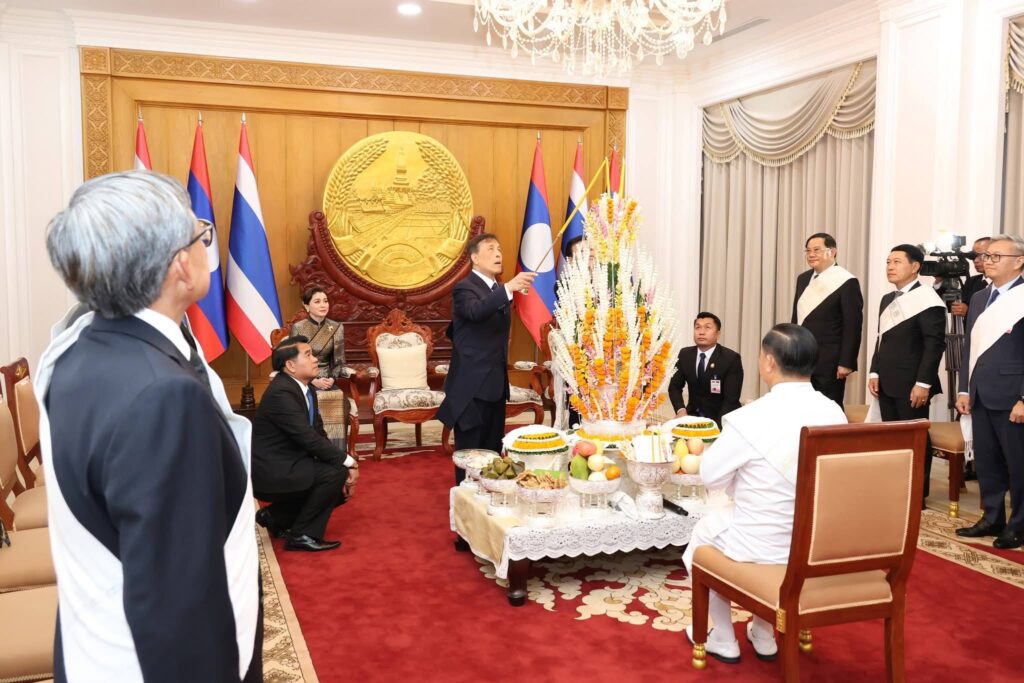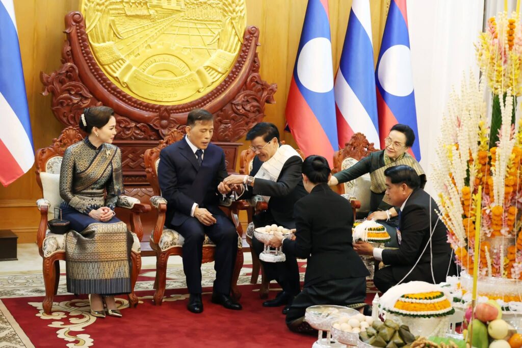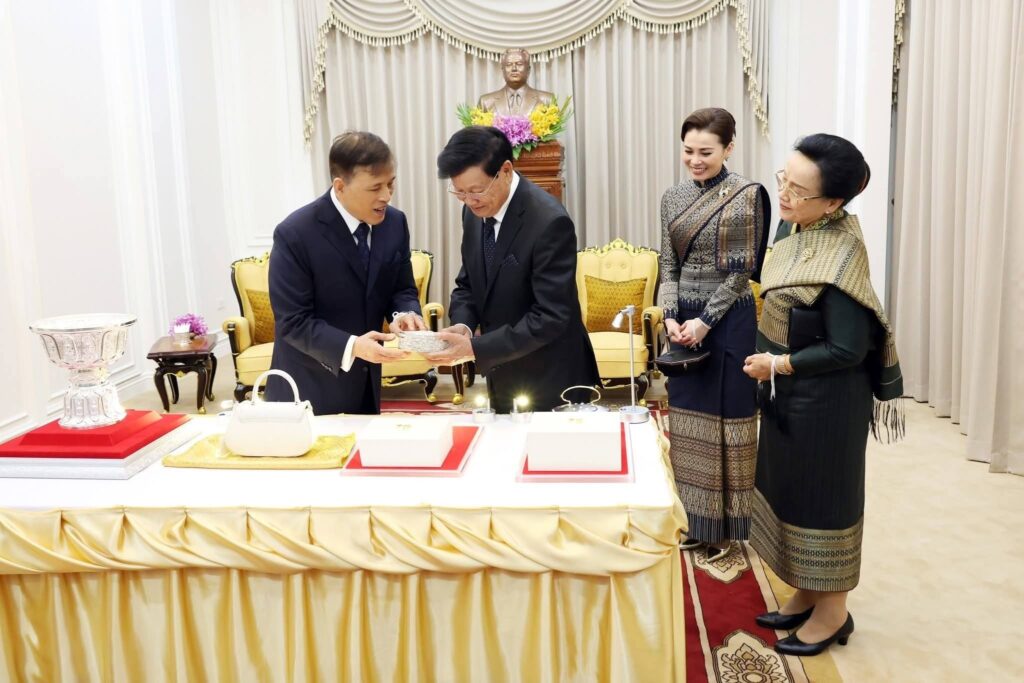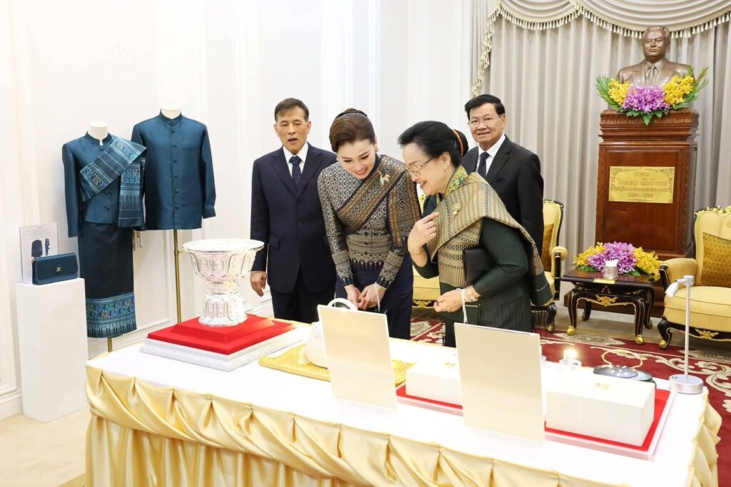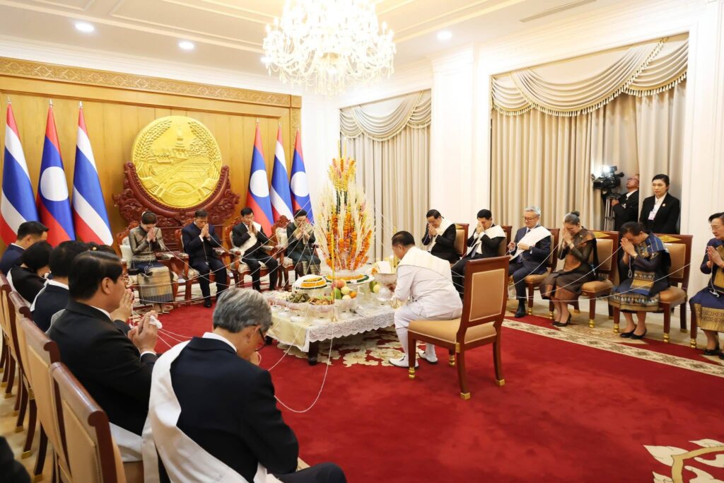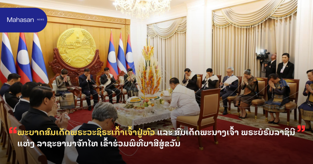 ພາບທີ່ອົບອຸ່ນໃນຕອນຄໍ່າວັນທີ 17 ມີນາ 2026 ທີ່ທໍານຽບປະທານປະເທດ ທ່ານ ທອງລຸນ ສີສຸລິດ ປະທານປະເທດ ແຫ່ງ ສປປ ລາວ ພ້ອມດ້ວຍພັນລະຍາ ເປັນກຽດຈັດ ພິທີບາສີສູ່ຂວັນ ແລະ ງານລ້ຽງຕ້ອນຮັບ ພະບາດສົມເດັດ ພຣະວະຊິຣະເກົ້າເຈົ້າຢູ່ຫົວ ແລະ ສົມເດັດພະນາງເຈົ້າ ພຣະບໍຣົມລາຊິນີ ແຫ່ງ ລາຊະອານາຈັກໄທ ຢ່າງອົບອຸ່ນ ໃນໂອກາດສະເດັດມາຢ້ຽມຢາມລັດຖະກິດ ຢູ່ ສປປ ລາວ ໃນລະຫວ່າງວັນທີ 16-18 ມີນາ 2026.