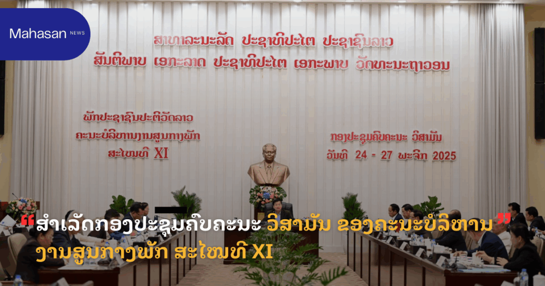 ກອງປະຊຸມຄົບຄະນະ ວິສາມັນຂອງຄະນະບໍລິຫານງານສູນກາງພັກ ສະໄໝທີ XI ໄດ້ດໍາເນີນມາແຕ່ວັນທີ 24-27ພະຈິກ2025ເປັນເວລາ 4 ວັນ ແລະ ໄດ້ປິດລົງດ້ວຍຜົນສໍາເລັດອັນຈົບງາມ ທີ່ສຳນັກງານສູນກາງພັກ, ພາຍໃຕ້ການເປັນປະທານຂອງ ສະຫາຍ ທອງລຸນ ສີສຸລິດ, ເລຂາທິການໃຫຍ່ ຄະນະບໍລິຫານງານສູນກາງພັກປະຊາຊົນປະຕິວັດລາວ, ປະທານປະເທດ ແຫ່ງ ສປປ ລາວ ໂດຍການເຂົ້າຮ່ວມຂອງບັນດາສະຫາຍຄະນະບໍລິຫານງານສູນກາງພັກ, ເລຂາພັກແຂວງ, ກະຊວງ, ອົງການ.