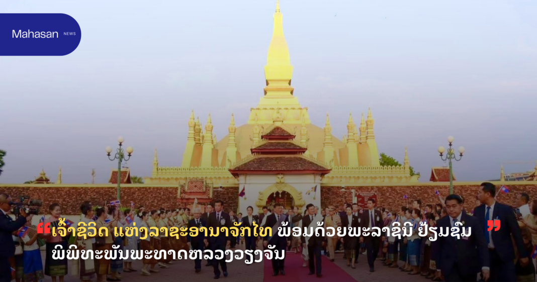 ໃນຕອນບ່າຍວັນທີ 18 ມີນາ 2026 ນີ້, ພະບາດສົມ ເດັດ ພຣະວະຊິຣະເກົ້າເຈົ້າຢູ່ຫົວ ແລະ ສົມເດັດພະນາງເຈົ້າ ພຣະບໍຣົມລາຊິນີ ແຫ່ງລາຊະອານາຈັກໄທ ພ້ອມດ້ວຍຄະນະ ໄດ້ສະເດັດຢ້ຽມຊົມ ພິທິທະພັນພະທາດຫຼວງວຽງ ຈັນ, ໃຫ້ກຽດຕ້ອນຮັບໂດຍ ທ່ານ ທອງລຸນ ສີສຸລິດ ປະ ທານປະເທດ ແຫ່ງ ສປປ ລາວ ພ້ອມດ້ວຍພັນລະຍາ ແລະ ຄະນະຜູ້ແທນ ທີ່ກ່ຽວຂ້ອງທັງສອງຝ່າຍ.