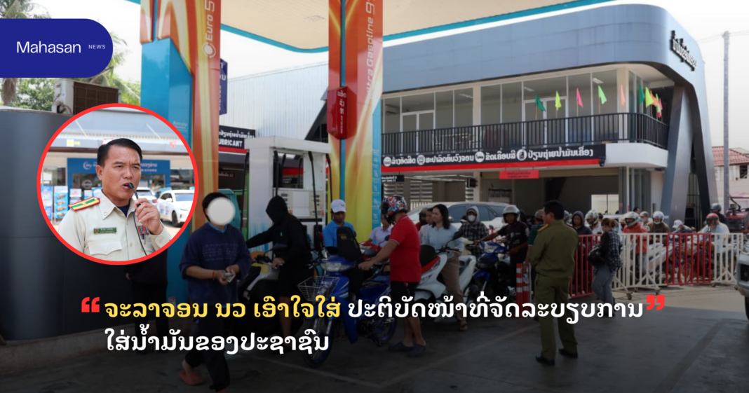 ທ່ານ ສິງເພັດ ມະນີເລີດ ຄະນະກອງຈະລາຈອນເມືອງຈັນທະບູລີ, ຜູ້ຊີ້ນຳວຽກງານຈັດລະ ບຽບໂຄສະນາ ໃຫ້ສຳພາດຕໍ່ນັກຂ່າວສຳນັກຂ່າວສານປະເທດລາວ ໃນວັນທີ 19 ມີນາ 2026 ນີ້ວ່າ: ໃນໄລຍະນີ້ ກໍຄື ວິກິດການຂາດແຄນນ້ຳມັນ ເຮັດໃຫ້ປະຊາຊົນຜູ້ໃຊ້ລົດໃຊ້ຖະໜົນ ຫລັ່ງໄຫລກັນໄປຕໍ່ຄິວໃສ່ນ້ຳມັນ ຢູ່ຕາມປ້ຳນ້ຳມັນແຫ່ງຕ່າງໆທີ່ເປີດໃຫ້ບໍລິການ ກໍ່ໃຫ້ເກີດຄວາມບໍ່ເປັນລະບຽບຮຽບຮ້ອຍ, ແອອັດ ສົ່ງຜົນໃຫ້ເກີດການຈະລາຈອນຕິດຂັດ. ເພື່ອແກ້ໄຂສະພາບການດັ່ງກ່າວ, ກຳລັງຕຳຫລວດຈະລາຈອນນະຄອນຫລວງວຽງຈັນ ກໍຄື ກອງຈະລາຈອນເມືອງຈັນທະບູລີ ໄດ້ເພີ່ມທະວີເອົາໃຈໃສ່ ແລະ ລົງປະຈຳຈຸດສຳຄັນຕ່າງໆ ໂດຍສະເພາະ ບໍລິເວນປ້ຳນ້ຳມັນ ເພື່ອຈັດສັນການຈອດລົດ ແລະ ການເຂົ້າຄິວໃສ່ນ້ຳມັນ ໃຫ້ເປັນລະບຽບ, ປ້ອງກັນບໍ່ໃຫ້ເກີດການຜິດຖຽງກັນ ແລະ ກໍໃຫ້ເກີດການສັນຈອນຕິດຂັດ. ພ້ອມກັນນີ້, ຍັງໄດ້ມີການແນະນຳ ແລະ ປະຊາສຳພັນໃຫ້ປະຊາຊົນ ເຂົ້າໃຈ ແລະ ຮ່ວມມືໃນການຮັກສາຄວາມເປັນລະບຽບ ເປັນຕົ້ນ ການເຂົ້າຄິວຕາມລຳດັບ, ບໍ່ແຊງຄິວ ແລະ ບໍ່ຈອດລົດໃນຈຸດທີ່ຫ້າມຈອດ ເພື່ອຮັກສາຄວາມເປັນລະບຽບຮ່ວມກັນ.