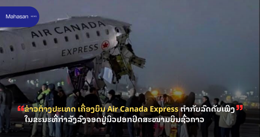 ມື້ນີ້ (ວັນທີ 23 ມີນາ 2026) ເວລາ 11:00 ນາທີ ຕາມເວລາປະເທດໄທ, ມີລາຍງານຂ່າວວ່າ: ເຄື່ອງບິນໂດຍສານແບບ Bombardier CRJ-900 ຖ້ຽວບິນ 646 ຂອງ Air Canada Express (ດຳເນີນການບິນໂດຍ Jazz Aviation ເຊິ່ງເປັນສາຍການບິນພັນທະມິດລະດັບພາກພື້ນຂອງ Air Canada) ທີ່ເດີນທາງມາຈາກເມືອງມອນທຣີອໍ (Montreal) ໄດ້ປະສົບອຸບັດຕິເຫດຕຳກັບລົດດັບເພີງຢູ່ທາງແລ່ນ (Runway) ໝາຍເລກ 4 ໃນລະຫວ່າງການລົງຈອດ ທີ່ທ່າອາກາດສະຍານ ລາກວໍເດຍ (LaGuardia Airport) ນິວຢອກ, ສະຫະລັດອາເມຣິກາ.