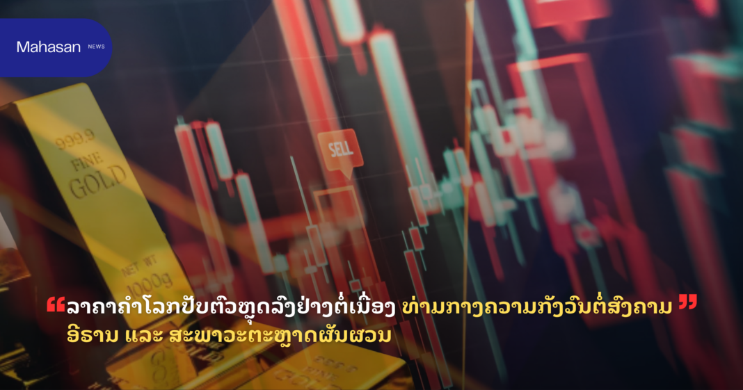 ດ້ວຍຄວາມຂັດແຍ່ງໃນອີຣານທີ່ກ້າວເຂົ້າສູ່ອາທິດທີສີ່, ລາຄາຄຳໃນຕະຫຼາດສະປອດ (Spot Gold) ໄດ້ຫຼຸດລົງແລ້ວ 15% ນັບຕັ້ງແຕ່ເລີ່ມການສູ້ຮົບໃນວັນທີ 28 ກຸມພາ ແລະ ຕ່ຳກວ່າລະດັບສູງສຸດເປັນປະຫວັດການໃນເດືອນມັງກອນເຖິງ 22%.