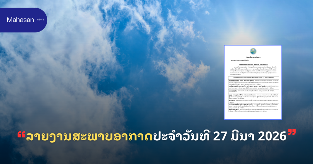 ລາຍງານສະພາບອາກາດປະຈໍາວັນທີ 27 ມີນາ 2026