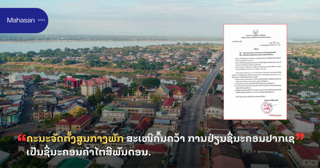 – ອີງຕາມ ບົດລາຍງານ ການຄົ້ນຄວ້າການປ່ຽນຊື່ນະຄອນປາກເຊເປັນນະຄອນຄໍາໄຕ ສີພັນດອນ ຂອງກົມ ການປົກຄອງທ້ອງຖິ່ນ ສະບັບເລກທີ 75/ປທ, ລົງວັນທີ 23 ມີນາ 2026.