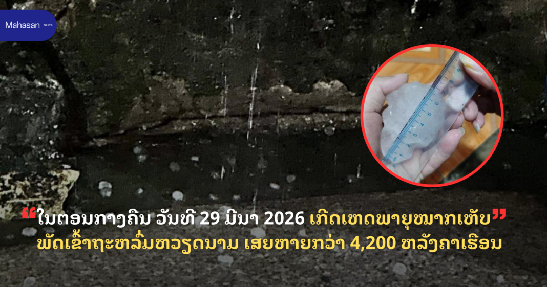 ໜັງສືພິມຫວຽດນາມລາຍງານວ່າ: ເກີດເຫດພາຍຸຝົນຟ້າຄະນອງ ແລະ ໝາກເຫັບຕົກຢ່າງຮຸນແຮງ ຖະຫລົ່ມຫລາຍພື້ນທີ່ໃນແຂວງຫລາວກ່າຍ ປະເທດຫວຽດນາມ ໃນຕອນກາງຄືນ ວັນທີ 29 ມີນາ 2026 ສົ່ງຜົນໃຫ້ບ້ານເຮືອນປະຊາຊົນ ເສຍຫາຍກວ່າ 4,200 ຫລັງຄາເຮືອນ ແລະ ເພພັງໝົດຫລັງ 7 ຫລັງ.