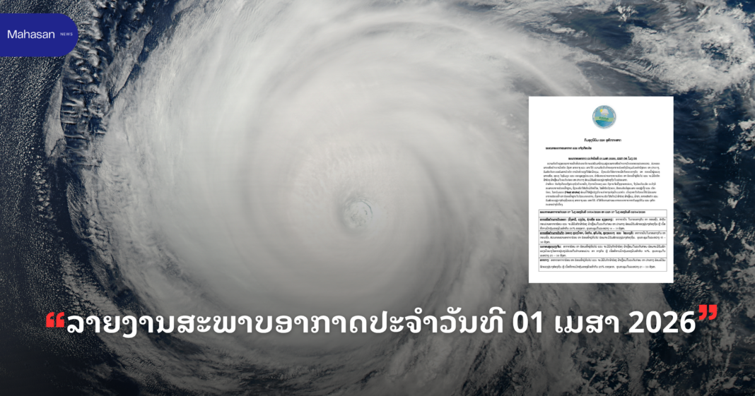 ພະຍາກອນອາກາດ ແຕ່ເວລາ 07 ໂມງ ຂອງວັນທີ 01/04/2026 ຫາ ເວລາ 07 ໂມງ ຂອງວັນທີ 02/04/2026
