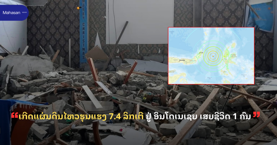 ເກີດແຜ່ນດິນໄຫວຮຸນແຮງ 7.4 ລິກເຕີ ຢູ່ ອິນໂດເນເຊຍ ເສຍຊີວິດ 1 ຄົນ
