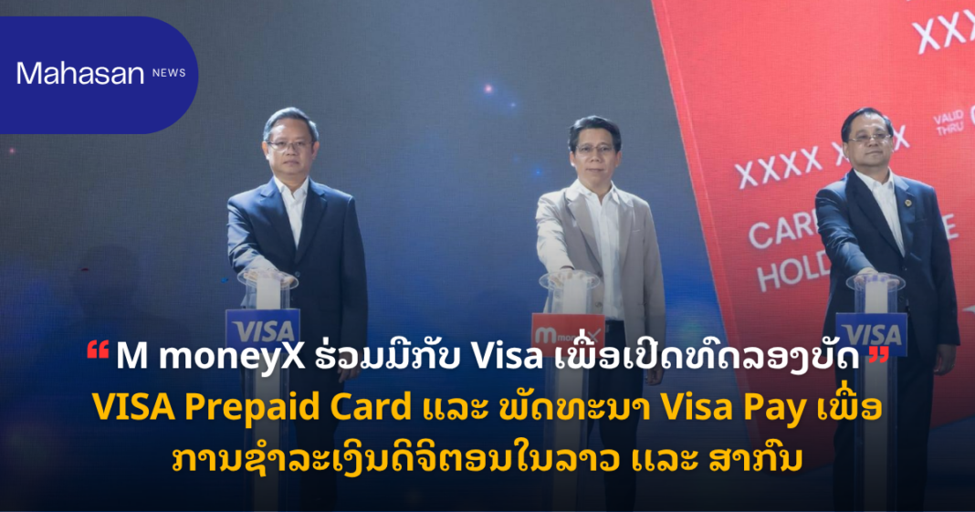 ບໍລິສັດ Lao Mobile Money Sole Co., Ltd. (“M moneyX”) ເປັນຜູ້ໃຫ້ບໍລິການ e-wallet ຊັ້ນນຳໃນ ສປປ ລາວ ໄດ້ປະກາດເປີດຕົວ ເປີດການທົດລອງນໍາໃຊ້ບັດ M moneyX Visa Prepaid Card ພ້ອມກັບ ພັດທະນາ Visa Pay ເຂົ້າໃນແອັບ ໂດຍຮ່ວມມືກັບ Visa ຜູ້ນຳດ້ານການຊຳລະເງິນດິຈິຕອນລະດັບໂລກ. ໂດຍມີ ທະນາຄານ ຮ່ວມພັດທະນາລາວ ມະຫາຊົນ ເປັນ sponsoring bank