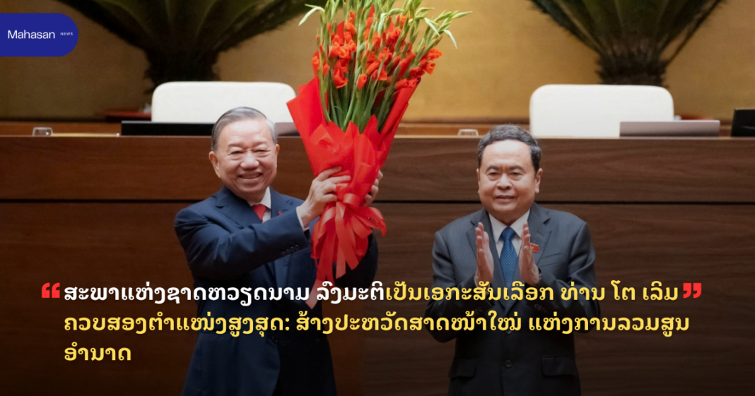 ສະພາແຫ່ງຊາດຫວຽດນາມ ມີມະຕິເຫັນດີ 100% ເລືອກເອົາທ່ານ ໂຕ ເລິມ (To Lam), ໄວ 68 ປີ, ໃຫ້ດຳລົງຕຳແໜ່ງປະທານປະເທດ ແຫ່ງ ສາທາລະນະລັດ ສັງຄົມນິຍົມ ຫວຽດນາມ ວາລະປີ 2026-2031 ຢ່າງເປັນທາງການ. ການກ້າວຂຶ້ນສູ່ຕຳແໜ່ງສູງສຸດໃນຄັ້ງນີ້ ຖືເປັນການຮັດແໜ້ນອຳນາດຄັ້ງປະຫວັດສາດ ເນື່ອງຈາກທ່ານ ໂຕ ເລິມ ຈະຄວບທັງຕຳແໜ່ງເລຂາທິການໃຫຍ່ພັກຄອມມູນິດ ແລະ ປະທານປະເທດ, ເຊິ່ງເປັນຮູບແບບການນຳທີ່ຄ້າຍຄືກັບ ປະທານປະເທດ ສີ ຈິ້ນຜິງ ຂອງຈີນ.