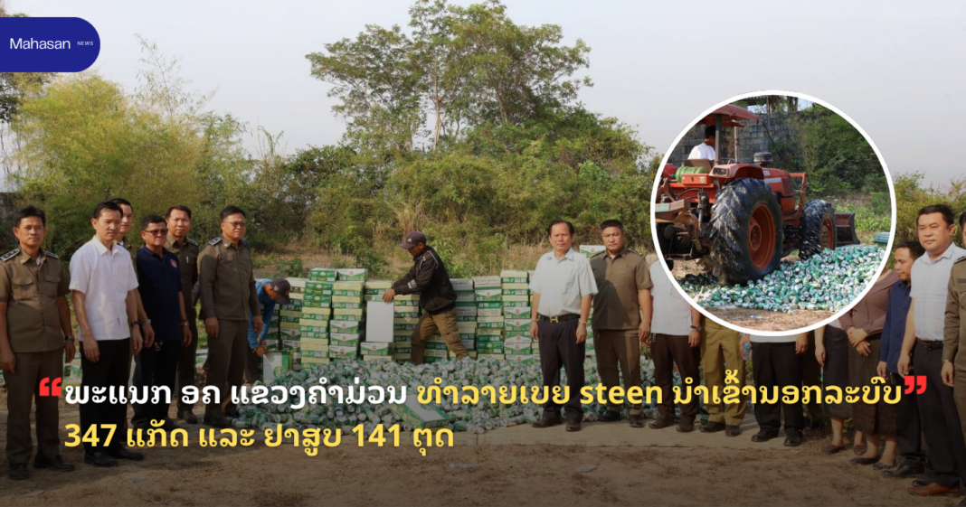 Khammouane News ລາຍງານວ່າ: ວັນທີ 7 ເມສາ 2026 ພະແນກອຸດສາຫະກໍາ ແລະ ການຄ້າ ແຂວງຄໍາມ່ວນ ໄດ້ຈັດພິທີທໍາລາຍສິນຄ້າທີ່ລະເມີດກົດໝາຍ, ລະບຽບດ້ານການຄ້າ ແລະ ສິນຄ້ານອກລະບົບ ທີ່ທາງເຈົ້າໜ້າທີ່ກວດກາການຄ້າແຂວງຍຶດໄດ້ ໃນໄລຍະຜ່ານມາ. ໂດຍການເຂົ້າຮ່ວມຂອງ ທ່ານ ວັນທອນ ບຸດສົມພັນ ຮອງຫົວໜ້າພະແນກອຸດສາຫະກຳ ແລະ ການຄ້າແຂວງ, ພ້ອມດ້ວຍພາກສ່ວນຂະແໜງການກ່ຽວຂ້ອງເຂົ້າຮ່ວມ.