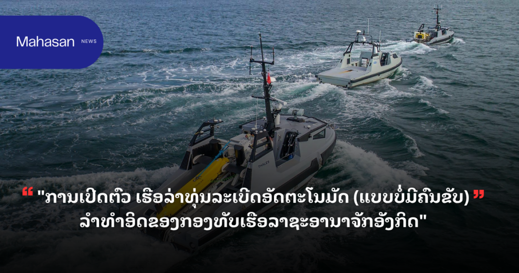 “ການເປີດຕົວ ເຮືອລ່າທຸ່ນລະເບີດອັດຕະໂນມັດ (ແບບບໍ່ມີຄົນຂັບ) ລຳທຳອິດຂອງກອງທັບເຮືອລາຊະອານາຈັກອັງກິດ”
