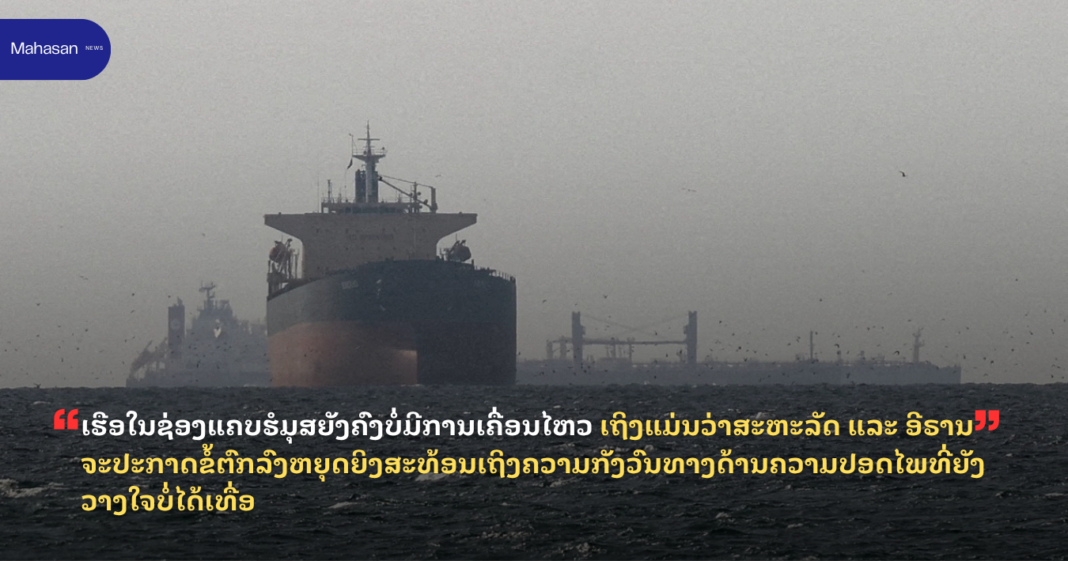 ເຮືອໃນຊ່ອງແຄບຮໍມຸສຍັງຄົງບໍ່ມີການເຄື່ອນໄຫວ ເຖິງແມ່ນວ່າສະຫະລັດ ແລະ ອີຣານຈະປະກາດຂໍ້ຕົກລົງຫຍຸດຍິງສະທ້ອນເຖິງຄວາມກັງວົນທາງດ້ານຄວາມປອດໄພທີ່ຍັງວາງໃຈບໍ່ໄດ້ເທື່ອ