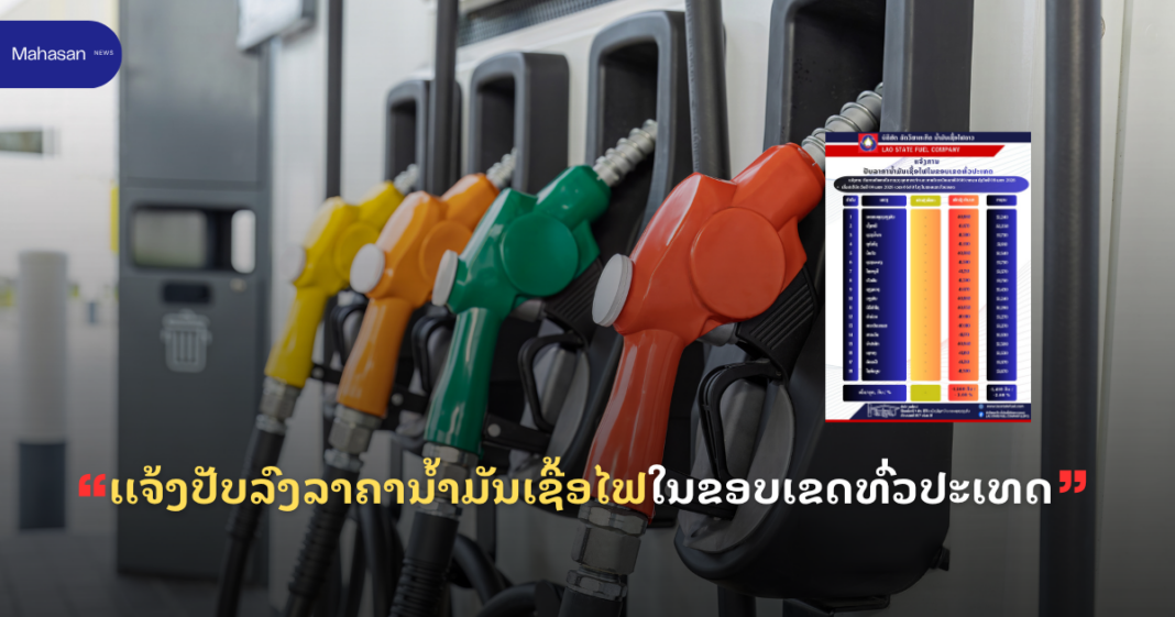 ປັບລົງລາຄານ້ຳມັນເຊື້ອໄຟໃນຂອບເຂດທົ່ວປະເທດດັ່ງລຸ່ມນີ້: