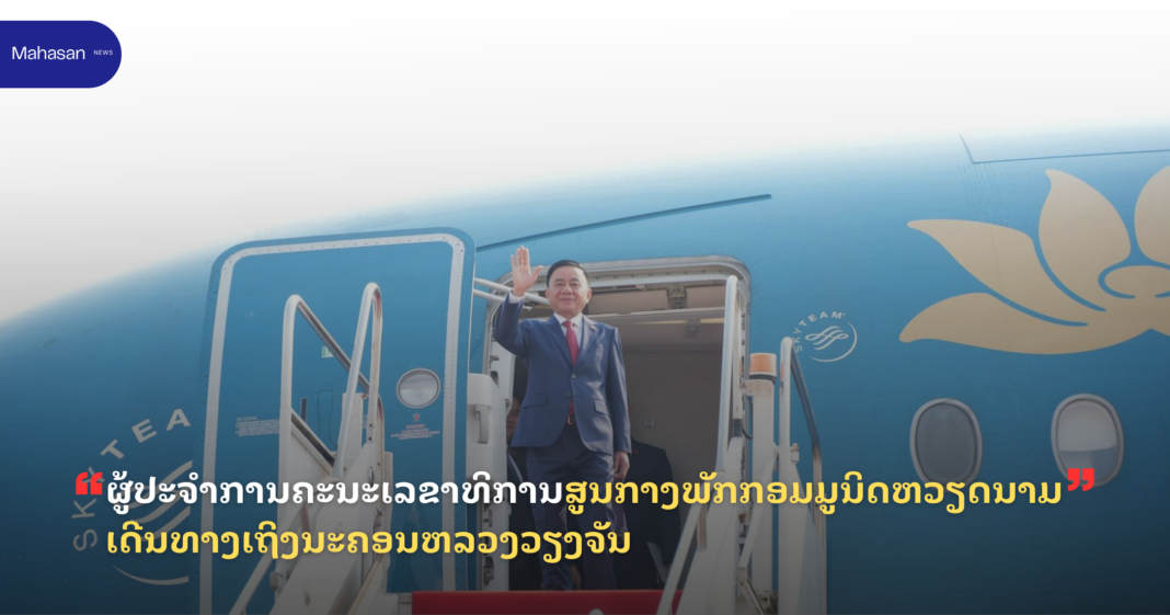 ຂປລ. ສະຫາຍ ເຈີນ ເກີ້ມ ຕູ໊ ກໍາມະການກົມການເມືອງສູນກາງພັກ, ຜູ້ປະຈໍາການຄະນະເລຂາທິການສູນກາງພັກກອມມູນິດຫວຽດນາມ ພ້ອມດ້ວຍຄະນະຜູ້ແທນຂັ້ນສູງ ພັກ, ລັດ ສສ ຫວຽດນາມ ໄດ້ເດີນທາງມາເຖິງ ສະໜາມ ບິນສາກົນວັດໄຕ ນະຄອນຫລວງວຽງຈັນ (ນວ) ໃນຕອນ ເຊົ້າວັນທີ 9 ເມສາ 2026 ໂດຍມີ ສະຫາຍ ເພັດ ພົມພີພັກ ກຳມະການກົມການເມືອງສູນກາງພັກ, ຫົວໜ້າຫ້ອງວ່າການສູນກາງພັກ, ພ້ອມດ້ວຍຄະນະ ໃຫ້ການຕ້ອນຮັບ.