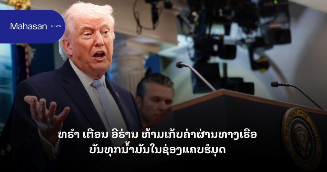 ໂດນັລ ທຣໍາ ໂພສຜ່ານແພລດຟອມ Truth Social ລະບຸວ່າ “ມີລາຍງານວ່າ ອີຣ່ານກຳລັງເກັບຄ່າທຳນຽມຈາກເຮືອບັນທຸກນ້ຳມັນທີ່ຜ່ານຊ່ອງແຄບຮໍໂມຊ — ຫ້າມພວກເຂົາເຮັດໂດຍເດັດຂາດ ແລະ ຖ້າກຳລັງເຮັດຢູ່ ກໍ່ຕ້ອງຢຸດດຽວນີ້!”