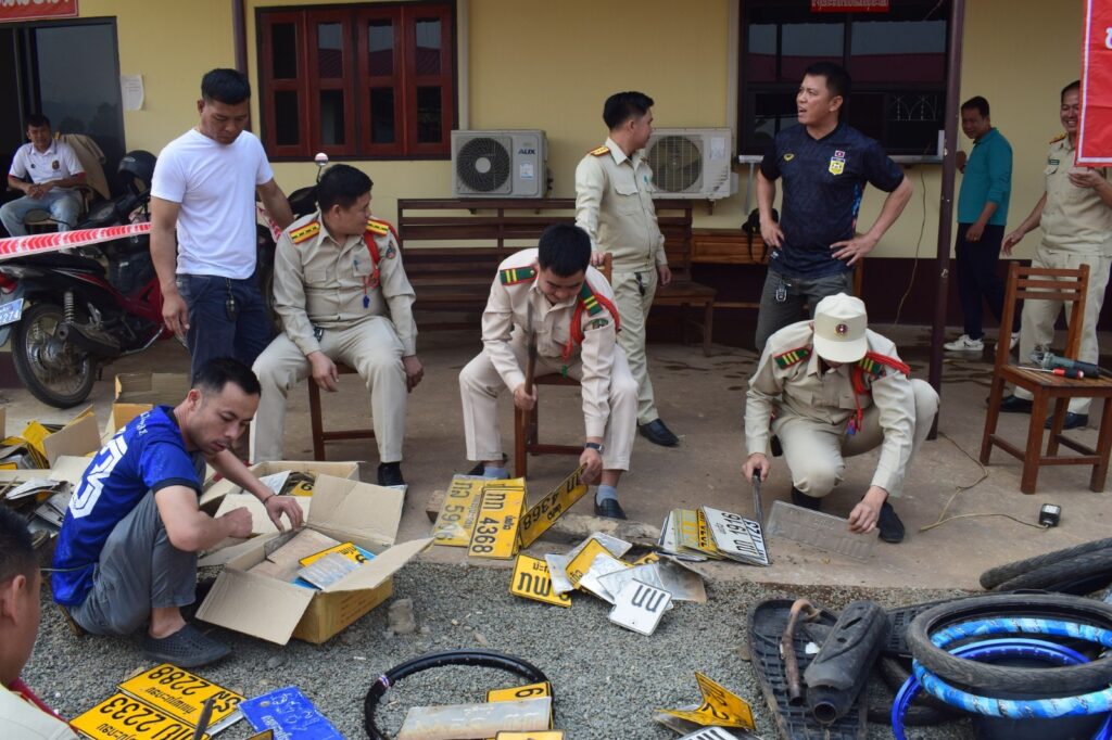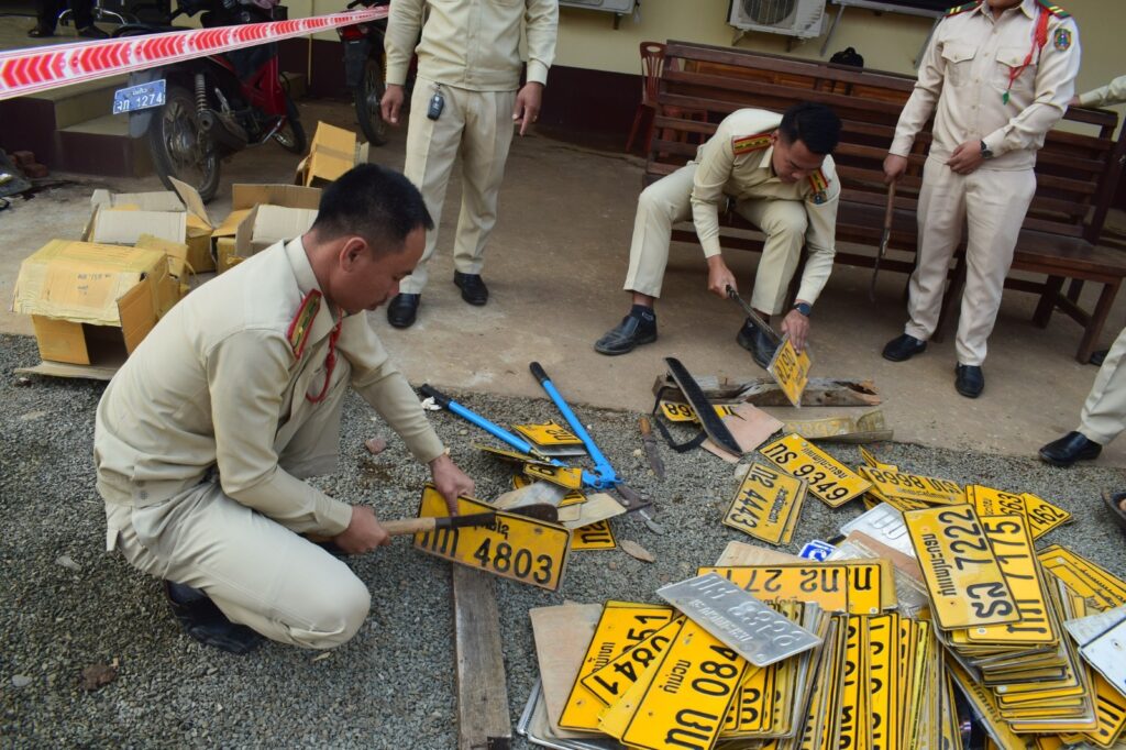 • ປ້າຍທີ່ຈະທໍາລາຍ ປ້າຍລົດທີ່ປົດອອກຈາກການນໍາໃຊ້ບໍ່ຖືກຕ້ອງ ແລະ ປ້າຍລົດທີ່ໂອນມາຈາກຕ່າງແຂວງ ຈໍານວນ 200 ປ້າຍ,