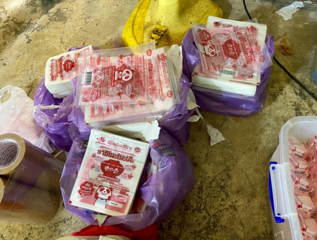 ຈາກການກວດຄົ້ນເພີ່ມເຕີມ, ພົບຂອງກາງລວມກວ່າ 24,000 ຫໍ່, ມູນຄ່າຄວາມເສຍຫາຍເກືອບ 2 ລ້ານບາດ ໂດຍຂະບວນການດັ່ງກ່າວໄດ້ລັກລອບຜະລິດ ແລະ ຈຳໜ່າຍມາເປັນເວລາດົນກວ່າ 2 ປີ ກ່ອນຈະຖືກຈັບກຸມໃນທີ່ສຸດ.