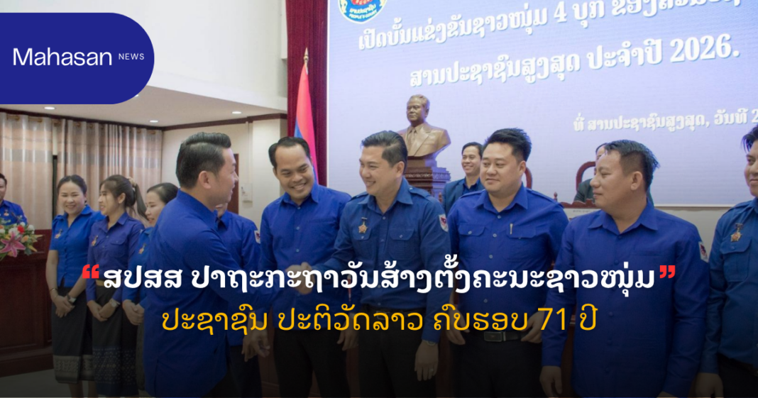 ວັນທີ 23 ເມສາ ນີ້ ທີ່ສານປະຊາຊົນສູງສຸດ (ສປສສ), ຄະນະບໍລິຫານງານຊາວໜຸ່ມ ສານປະຊາຊົນສູງສຸດ ໄດ້ຈັດພິທີປາຖະກະຖາສະເຫຼີມສະຫຼອງວັນສ້າງຕັ້ງຄະນະຊາວໜຸ່ມ ປະຊາຊົນ ປະຕິວັດລາວ ຄົບຮອບ 71 ປີ (14 ເມສາ 1955 ຫາ 14 ເມສາ 2026). ໃຫ້ກຽດປາຖະກະຖາໂດຍ ສະຫາຍ ສຸລິຍາ ແກ້ວພິລາວົງ ຮອງເລຂາຄະນະບໍລິຫານງານພັກ ຮອງເລຂາຄະນະບໍລິຫານງານສູນກາງຊາວໜຸ່ມປະຊາຊົນປະຕິວັດລາວ, ໂດຍມີ ສະຫາຍ ຂຸນສຸວັນ ສຸທຳມະວົງ ຄະນະປະຈຳພັກ ຮອງປະທານສານປະຊາຊົນສູງສຸດ, ສະຫາຍ ອານຸສິດ ສຸຂະທຳມະວົງ ຄະນະປະຈຳ ເລຂາຄະນະບໍລິຫານງານຊາວໜຸ່ມ ສປສສ ພ້ອມດ້ວຍສະມາຊິກຊາວໜຸ່ມເຂົ້າຮ່ວມຮັບຟັງ.