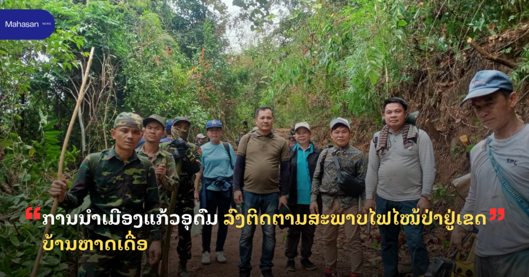 ຂປລ. ແຫລ່ງຂ່າວຈາກ ເມືອງອກ້ວອຸດົມ ແຂວງວຽງຈັນ ໃຫ້ຮູ້ວ່າ: ວັນທີ 24 ເມສາ 2026ຜ່ານມານີ້, ການນຳເມືອງແກ້ວອຸດົມ ແຂວງວຽງຈັນ ນໍາໂດຍ ທ່ານ ຈັນທະວົງ ບົວລະພັນ ຮອງເລຂາພັກເມືອງ, ປະທານຄະນະກໍາມະການປົກຄອງເມືອງແກ້ວອຸດົມ ພ້ອມຄະນະ ໄດ້ລົງຕິດຕາມສະພາບໄຟໄໝ້ປ່າຢູ່ຄອບເຂດບ້ານຫາດເດື່ອ, ບ້ານນາແຊະ, ບ້ານສາມັກຄີໄຊ ,ບ້ານຂ້າມຊ້າງ ແລະ ບ້ານພູເຂົາຄໍາ.